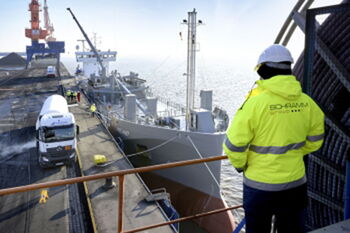 Zementfrachter „Ireland“ wurde im Brunsbütteler Elbehafen mit LNG (Liquefied Natural Gas) bebunkert. Der Truck-to-ship Bunkervorgang stellte zugleich die erste LNG-Schiffsbebunkerung eines Gütertransportschiffes im Elbehafen dar. Ein weiterer Schritt zur Etablierung Brunsbüttels als LNG-Standort.